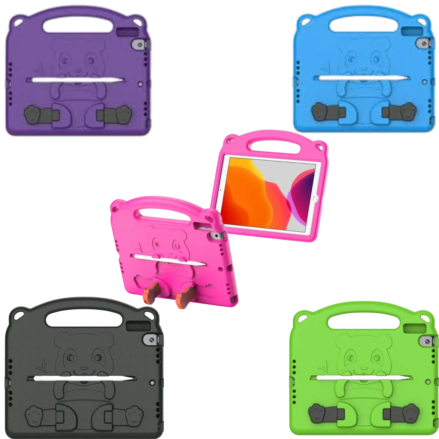 مقبض حمل: مزودة بمقبض كبير يسهل على الأطفال حمل الجهاز اللوحي.