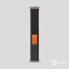 هذا سوار ساعة آبل (Apple Watch) رياضي أسود مصنوع من مادة الفلوروإلاستومر.